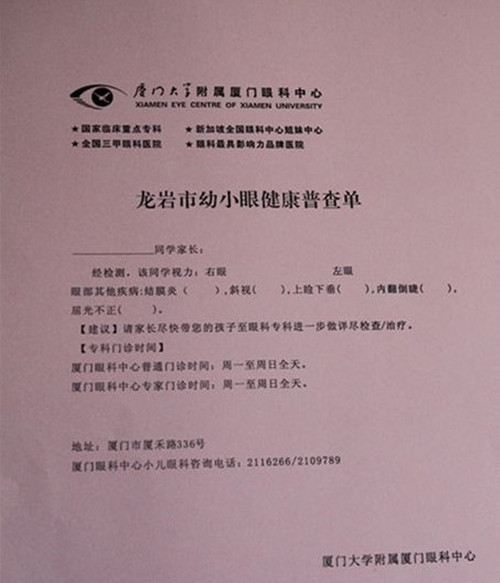 此次學(xué)生的視力篩查效果特別好,教師積極配合。龍巖溪南小學(xué)的老師在采訪時(shí)表示,學(xué)校在關(guān)注學(xué)生心理、身體健康成長(zhǎng)的同時(shí),也不能忽視學(xué)生的視力健康。據(jù)廈門眼科中心斜弱視及小兒眼科專科門診統(tǒng)計(jì),醫(yī)院每年共診治小兒眼科疾病10萬多例,數(shù)目巨大,其中有60%的孩子是近視、斜弱視及結(jié)膜炎等。