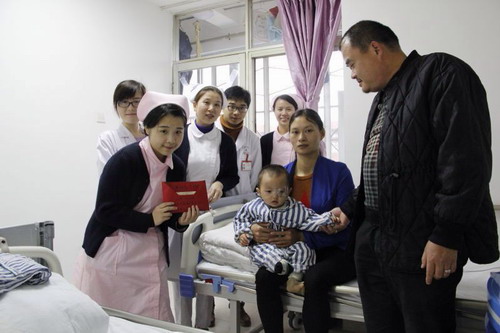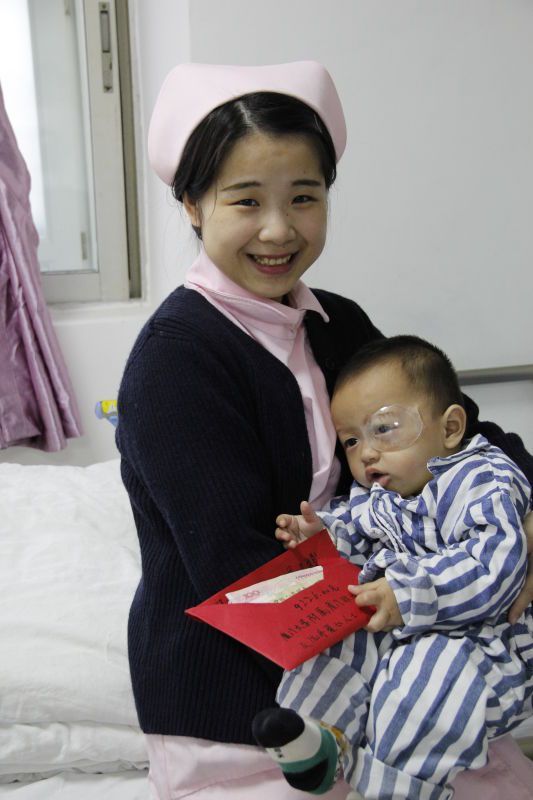 由于小燦寶家境不好,全家九口人,上面有年邁的爺爺奶奶,加上小燦寶兩兄弟,小燦寶媽媽要照顧兩個(gè)年幼的孩子無法工作,另外,小燦寶大伯幾年前去世,小燦寶大伯母離家未歸,大伯家的三個(gè)孩子也是小燦寶父母代為照顧,九口人只有小燦寶爸爸工作養(yǎng)家。護(hù)士梁嘉惠了解到情況后,與護(hù)士長陳秋蓮商量在微信朋友圈發(fā)起愛心捐款。經(jīng)過三天募集,一共募集到9926元善款。