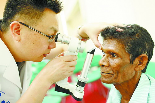廈門眼科中心張廣斌副院長為斯里蘭卡白內(nèi)障患者進行術前檢查