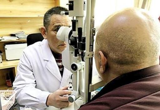 吳護(hù)平教授給患者檢查眼睛