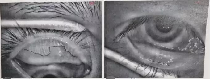 干眼門(mén)診的醫(yī)生為小李檢查后發(fā)現(xiàn),他的結(jié)膜輕度充血,淚河較窄,雙眼瞼板腺迂曲變粗,而且瞼板腺開(kāi)口堵塞。
