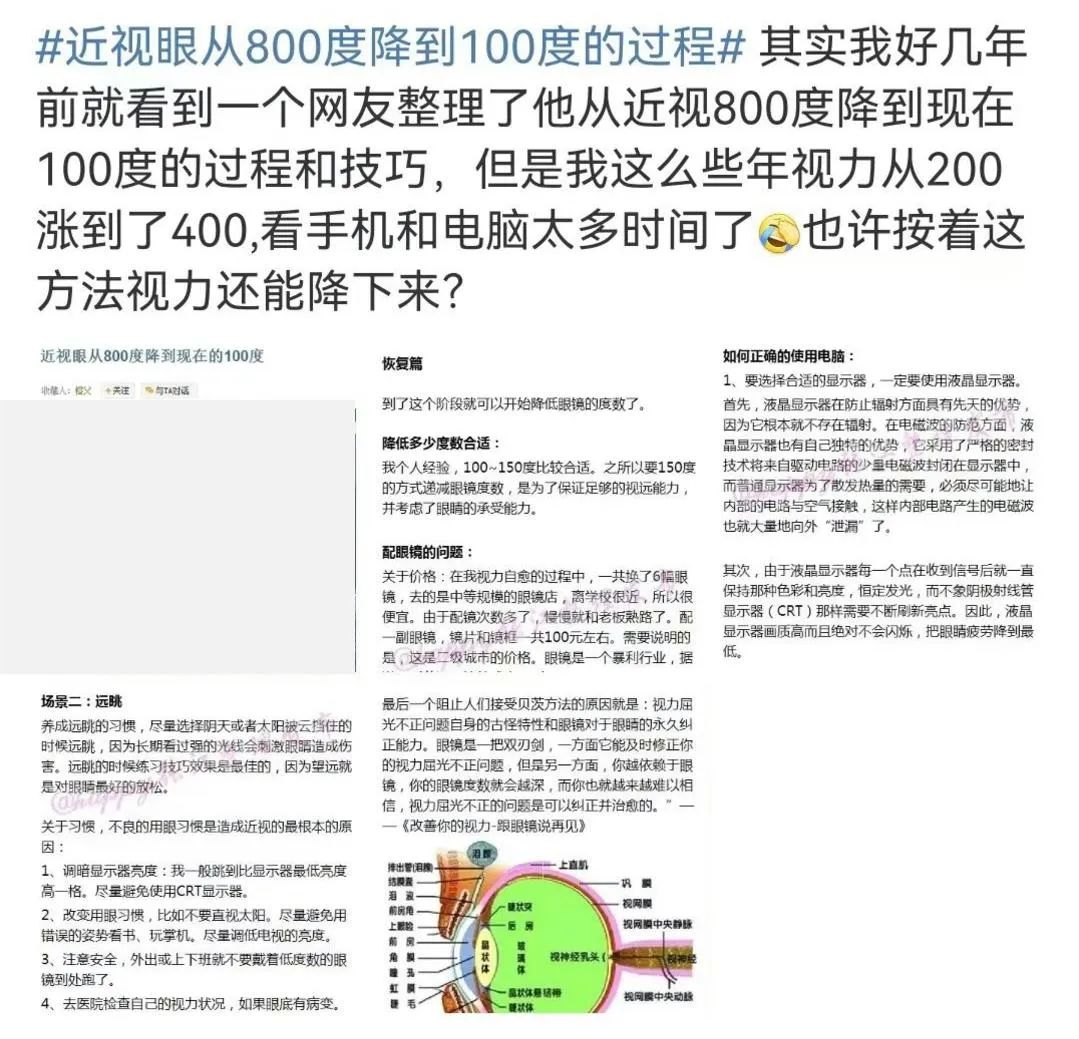 前段時間,一則#近視眼從800度降到100度的過程#的話題登上微博熱搜。